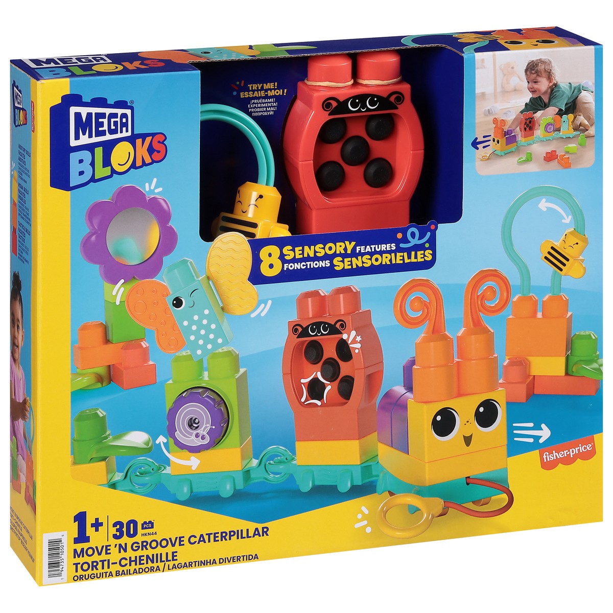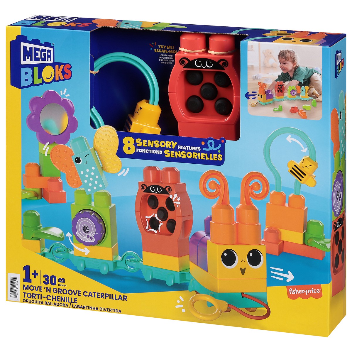 Little builders will move and groove alongside this adorable caterpillar train. Toddlers can build a caterpillar train with motion and chain blocks, and a pull string in the front to get it rolling. T…