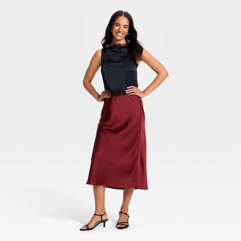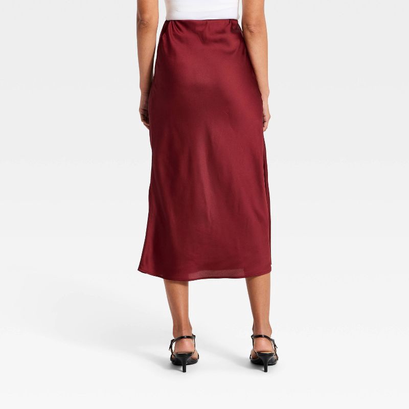 Bring soft elegance to your wardrobe with this Midi Slip Skirt from A New Day™. Made of 100% polyester satin fabric, this regular-rise skirt feels soft on the skin and adds a subtle sheen to the overa…