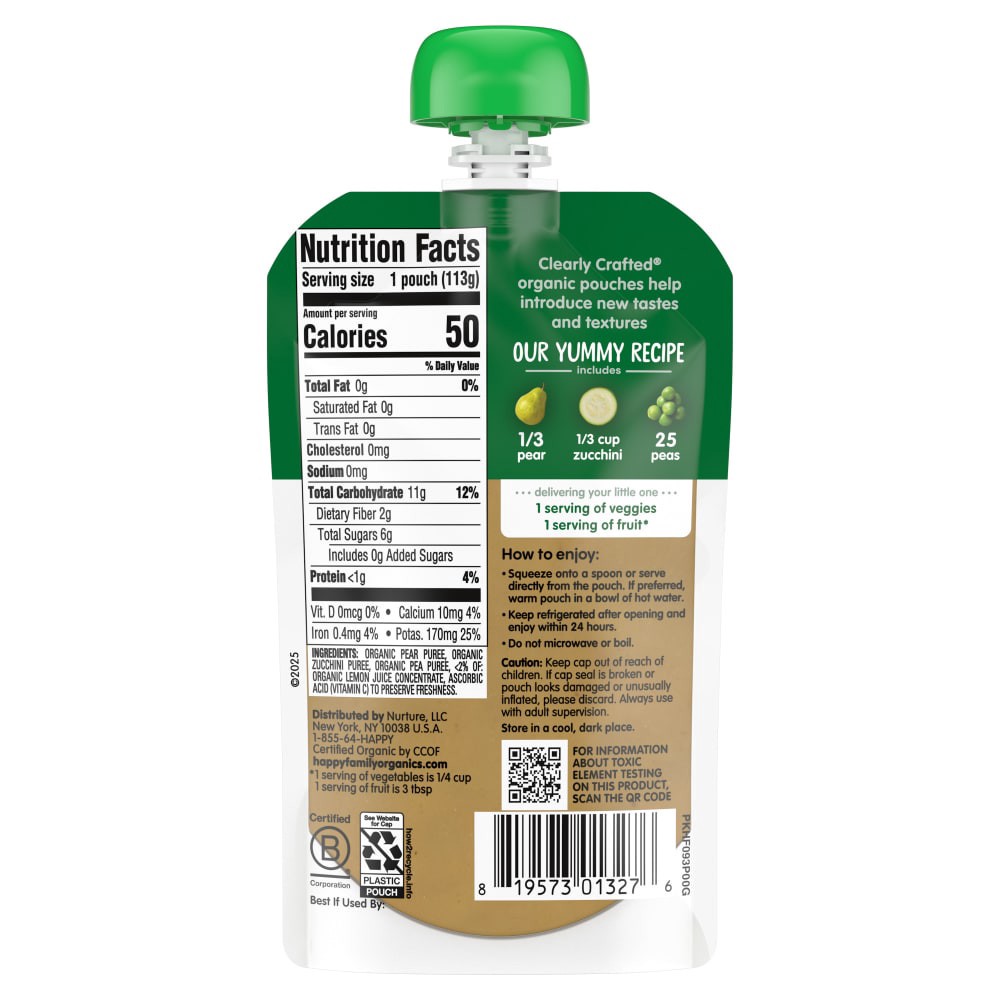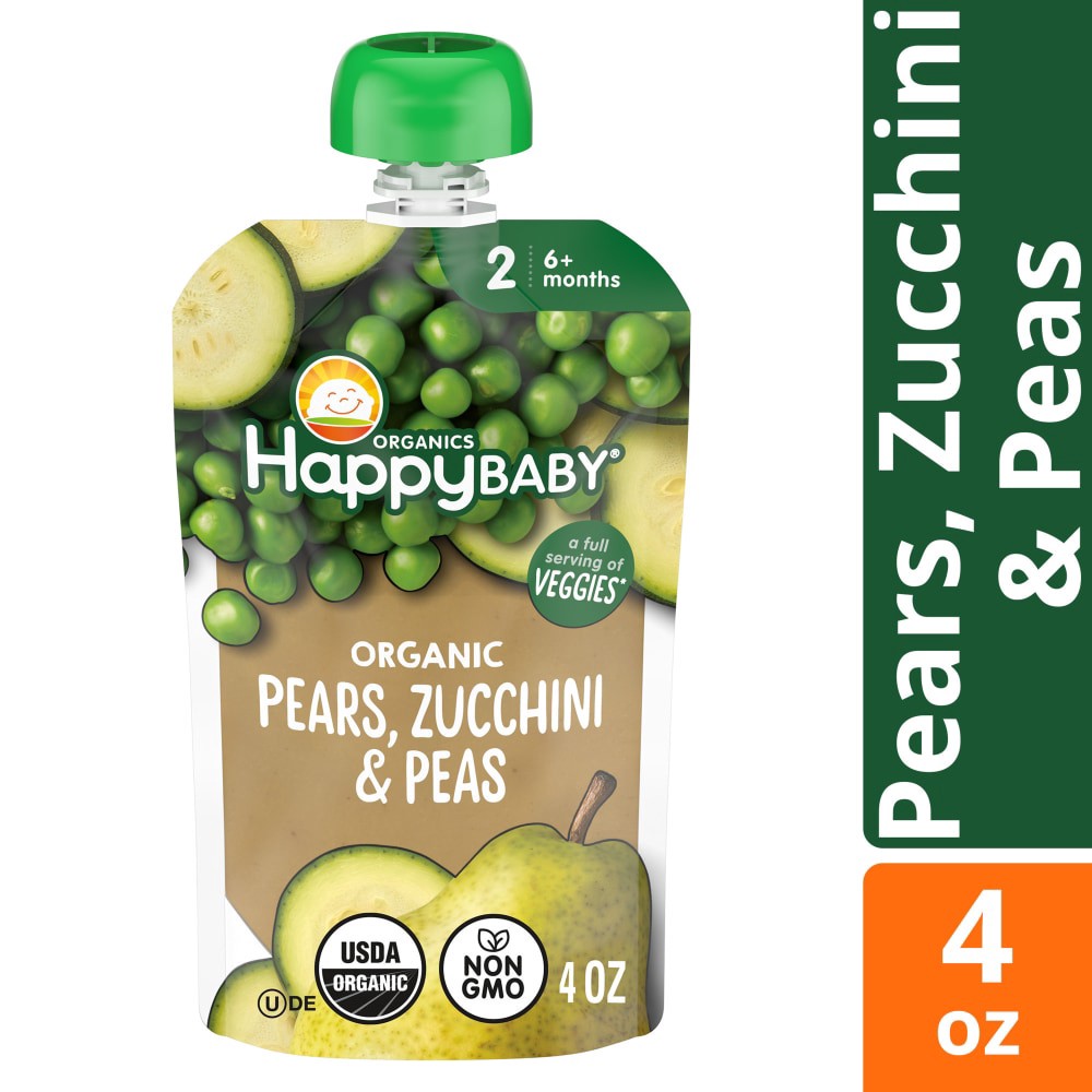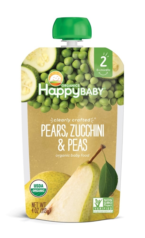 Happy Baby Organics Clearly Crafted Pears Zucchini & Peas Stage 2 Baby Food Pouch
