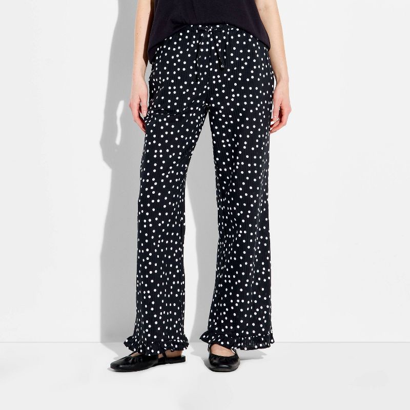 Women's The Devil Wears Prada Graphic Pull-On Pants - Black Polka Dots XXL