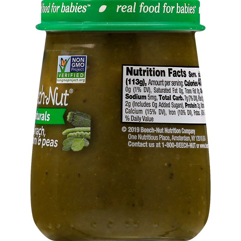 - Beech-Nut's deliciously pureed pea, spinach & zucchini baby food features a smooth texture for baby