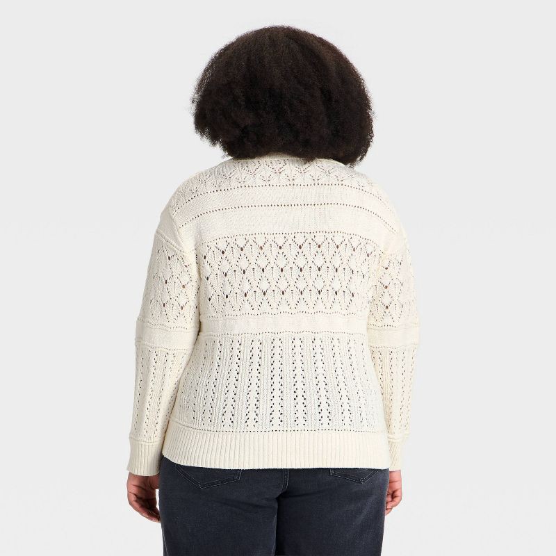 Women's Polo Collar Pullover Sweater - Ava & Viv™ Cream XXL