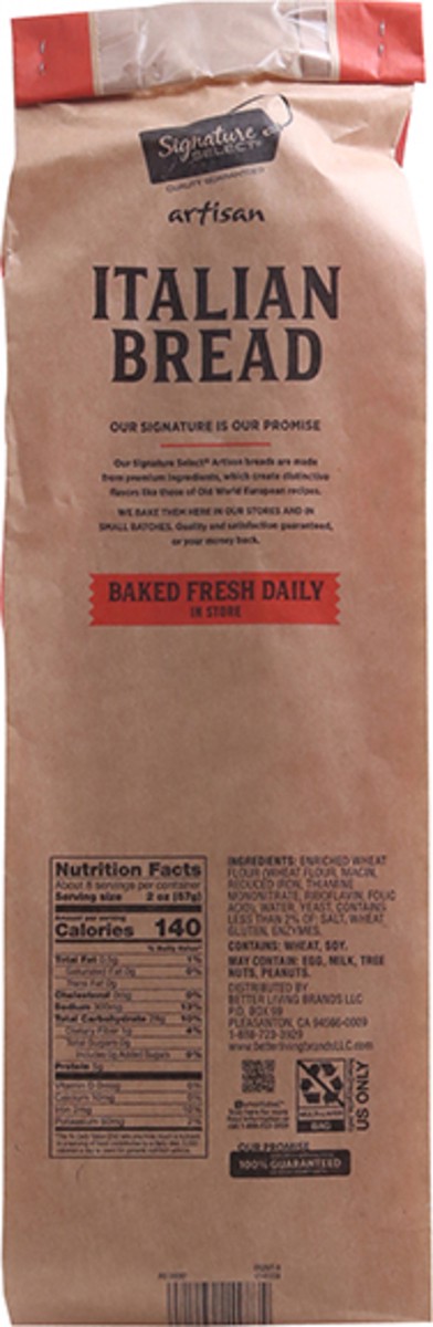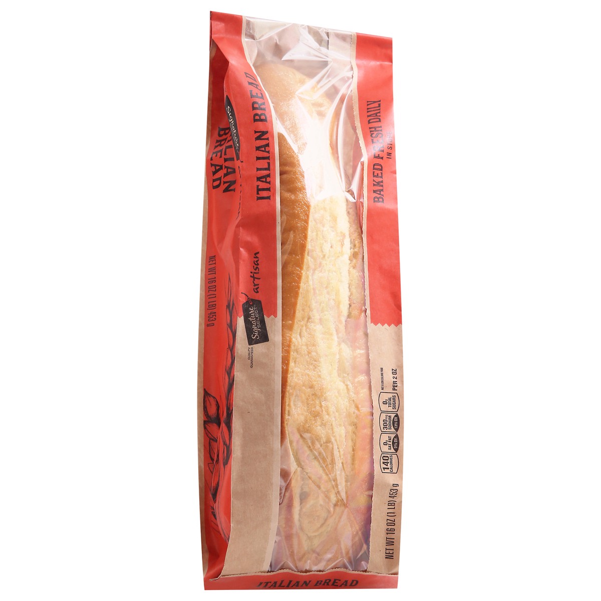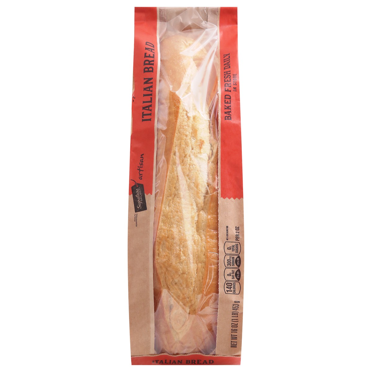 Per 2 oz: 140 calories; 0 g sat fat (0% DV); 300 mg sodium (13% DV); 0 g total sugars. Not a low calorie food. Artisan. Baked fresh daily in store. Our Signature is our Promise: Our Signature Select a…