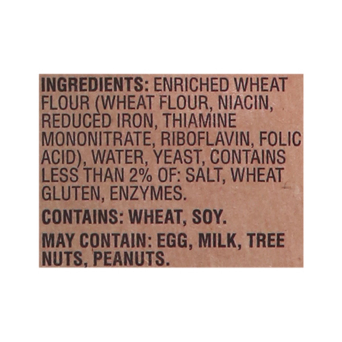 Enriched Wheat Flour (Wheat Flour, Niacin, Reduced Iron, Thiamine Mononitrate, Riboflavin, Folic Acid), Water, Yeast, Contains Less than 2% of Salt, Wheat Gluten, Enzymes.
