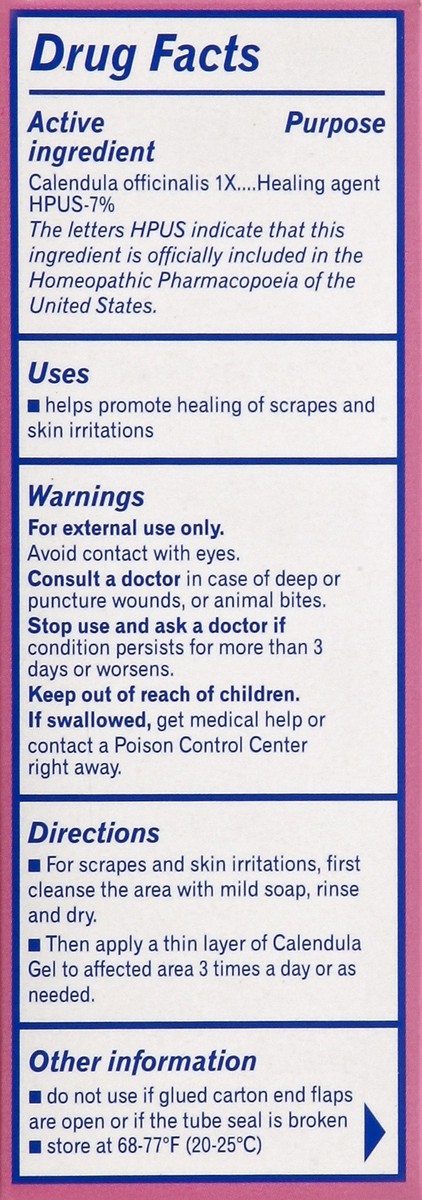 Active Ingredients: Calendula Officinalis 1X (HPUS-7%). Purpose: Healing Agent; The letters HPUS indicate that this ingredient is officially included in the Homeopathic Pharmacopoeia of the United Sta…