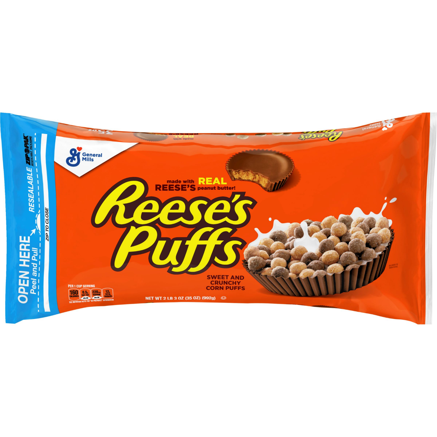 Reese's Puffs REESE’S PUFFS Chocolatey Peanut Butter Cereal, Kid Breakfast Cereal, Value Bag, 35 oz