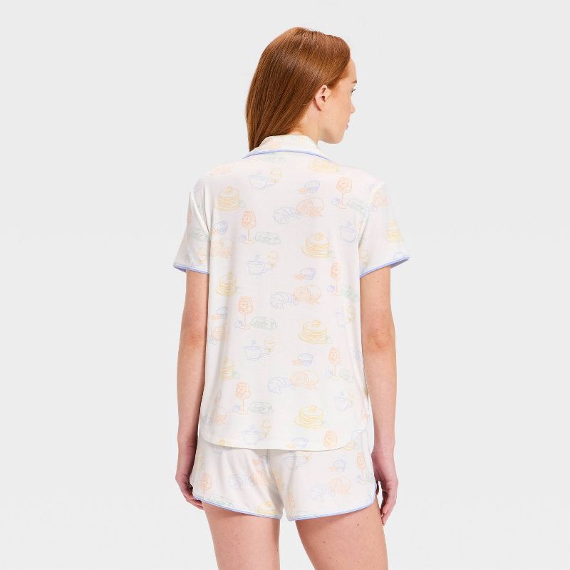 Women's Short Sleeve Notch Collar Shirt and Shorts Pajama Set - Auden™ Cream XXL