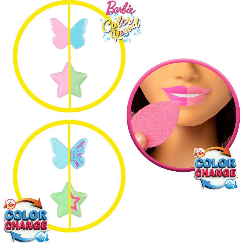 - Dip Barbie's barrettes into the water bowl to see the Color-Change reveal. Barbie's lips can change color, just fill up the sponge with water to see magic happen!