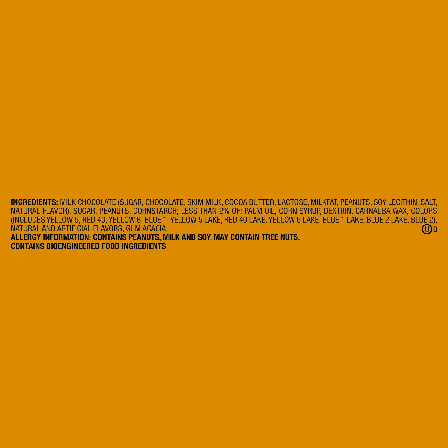 MILK CHOCOLATE (SUGAR, CHOCOLATE, SKIM MILK, COCOA BUTTER, LACTOSE, MILKFAT, PEANUTS, SOY LECITHIN, SALT,NATURAL FLAVOR), SUGAR, PEANUTS, CORNSTARCH; LESS THAN 2% OF: PALM OIL, CORN SYRUP, DEXTRIN, CA…