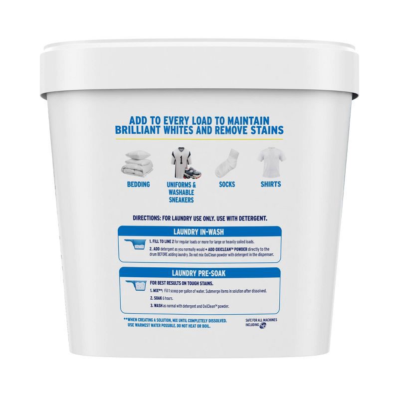 - One 5 lb container of OxiClean White Revive Laundry Whitener and Stain Remover Powder to revive brilliant whites