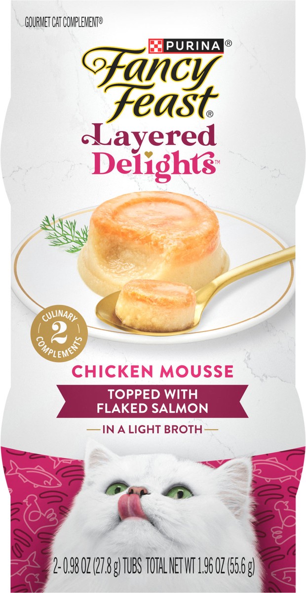 Purina Fancy Feast Layered Delights Chicken Mousse Topped With Flaked Salmon Gourmet Wet Cat Treats - 1.96 oz. Cup