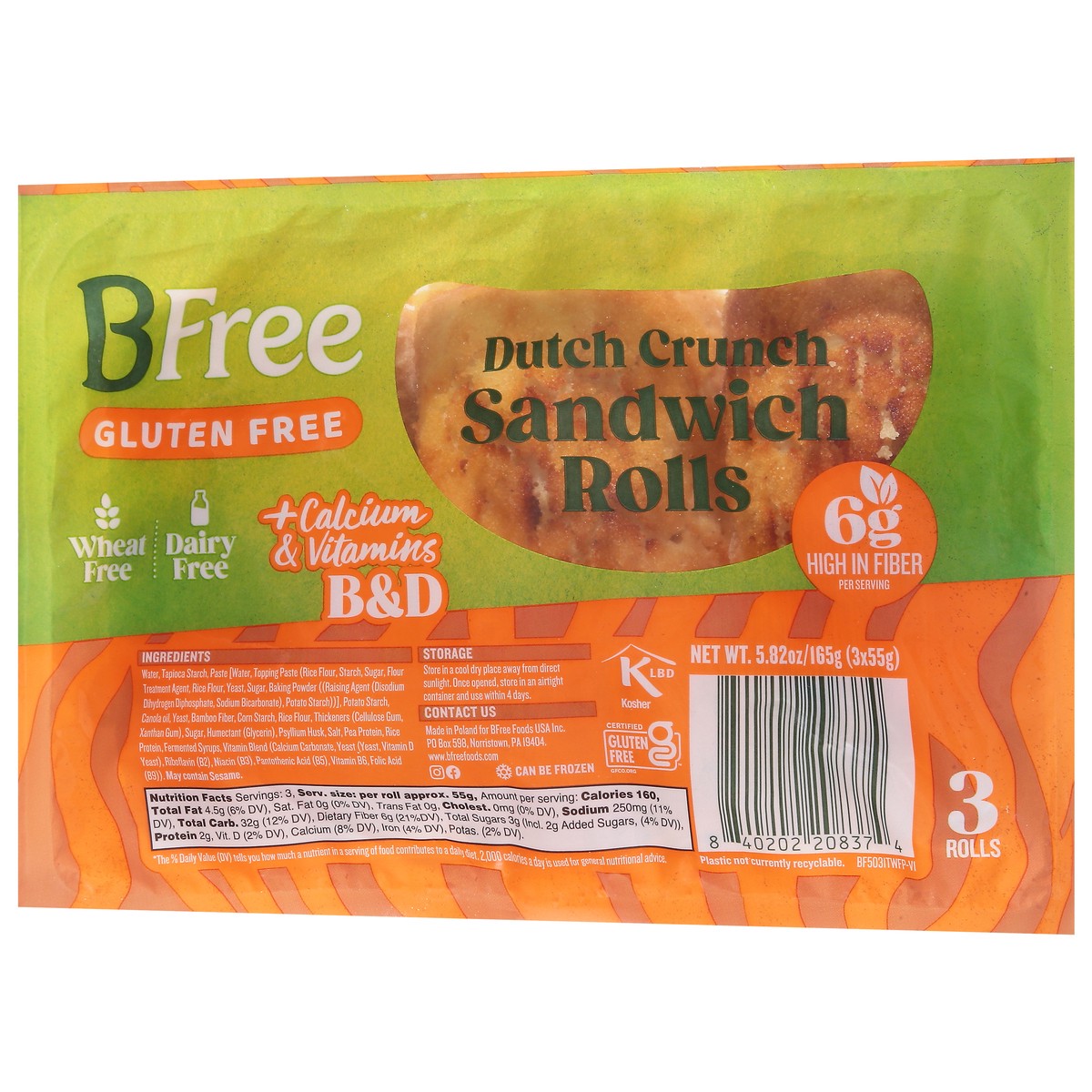 BFree Gluten Free Dutch Crunch Sandwich Rolls 3 ea