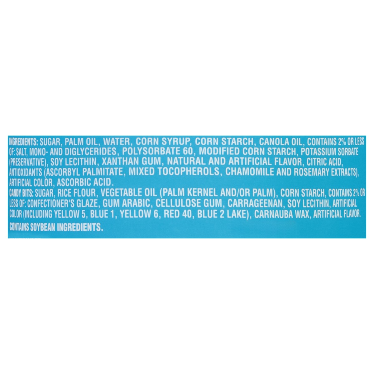 Sugar, Palm Oil, Water, Corn Syrup, Corn Starch, Canola Oil, Contains 2% or Less of: Salt, Mono- and Diglycerides, Polysorbate 60, Modified Corn Starch, Potassium Sorbate (Preservative), Soy Lecithin,…