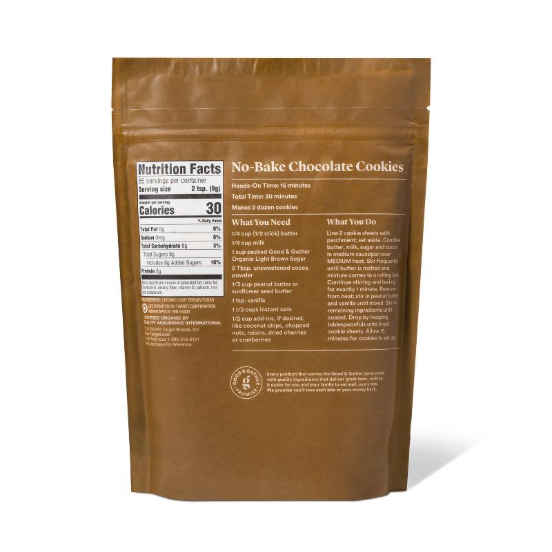 Sweeten your baked goods and treats with this Organic Light Brown Sugar from Good & Gather.™ Perfect for baking desserts like cookies, brownies, pies and cakes — or for using as a delicious topping fo…