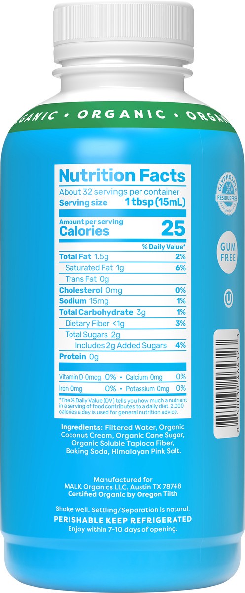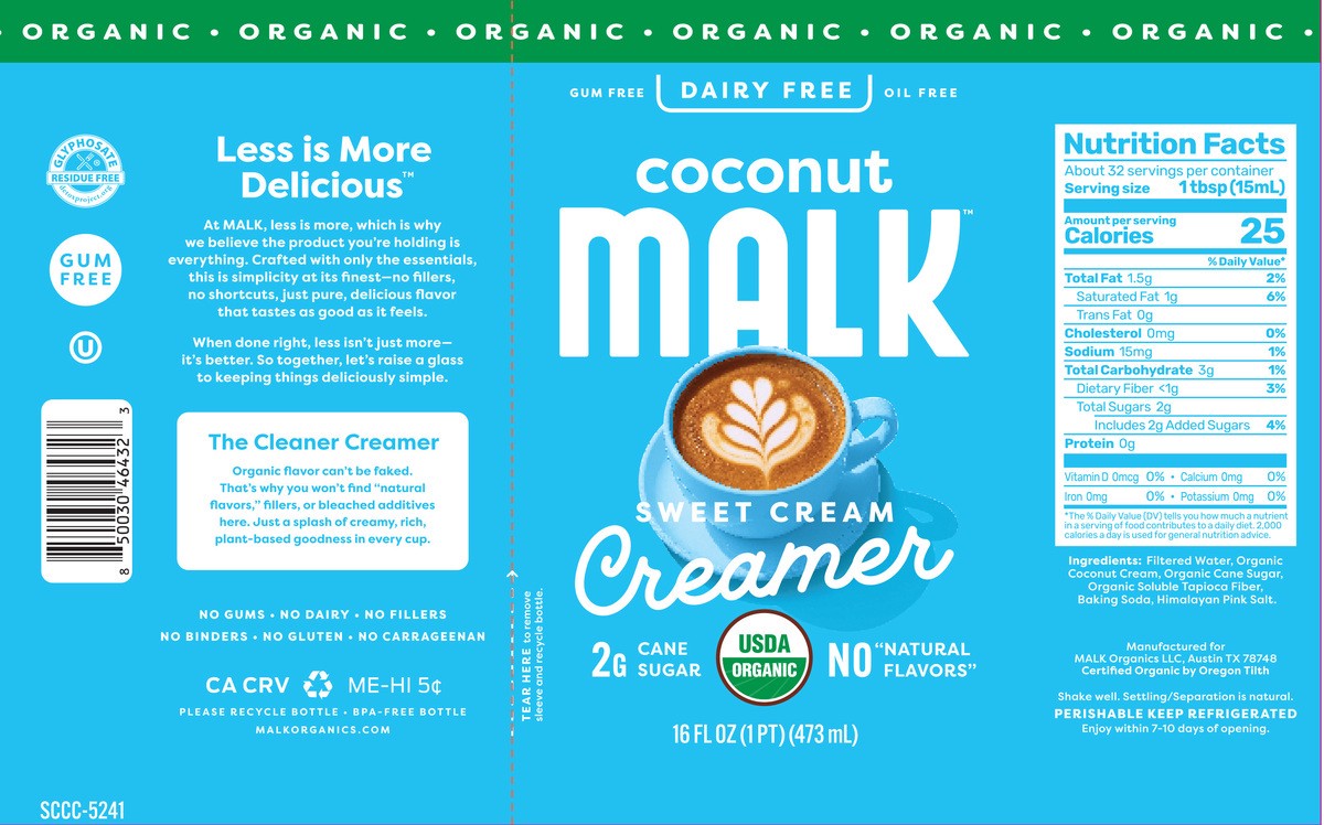 MALK Organic Non-Dairy Sweet Cream Coconut Milk Creamer 16 fl oz