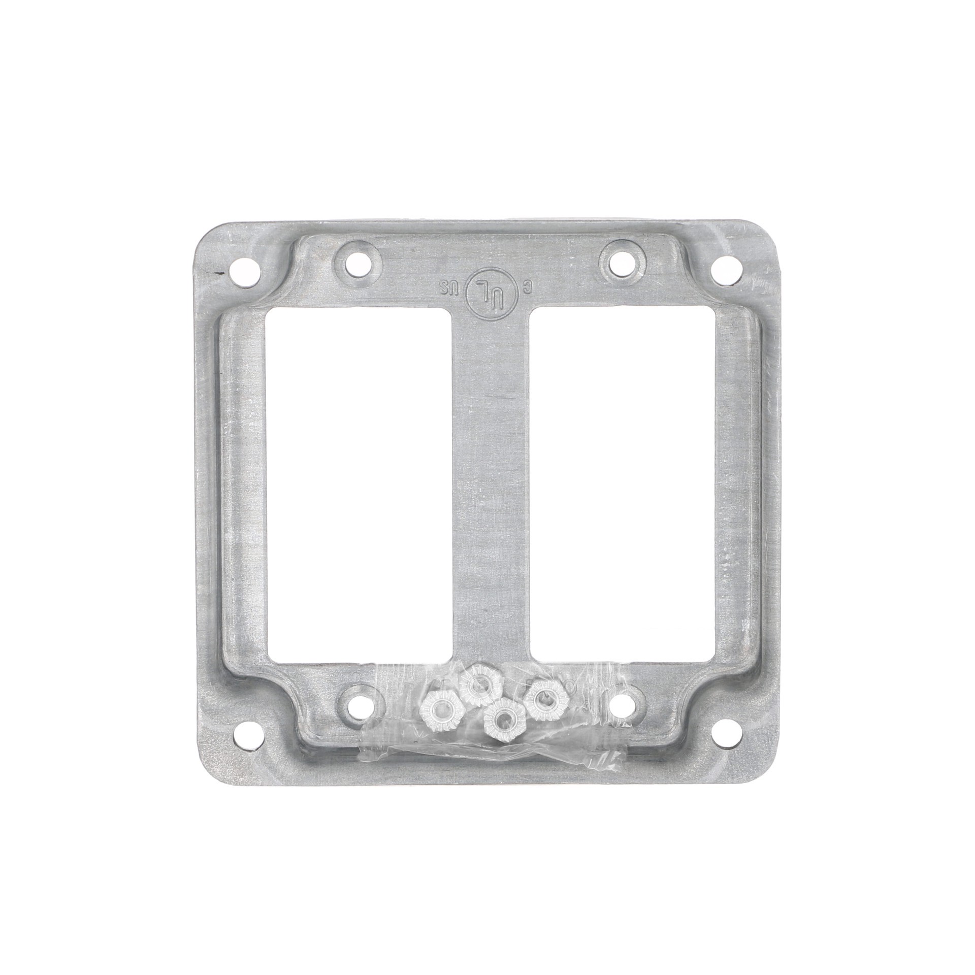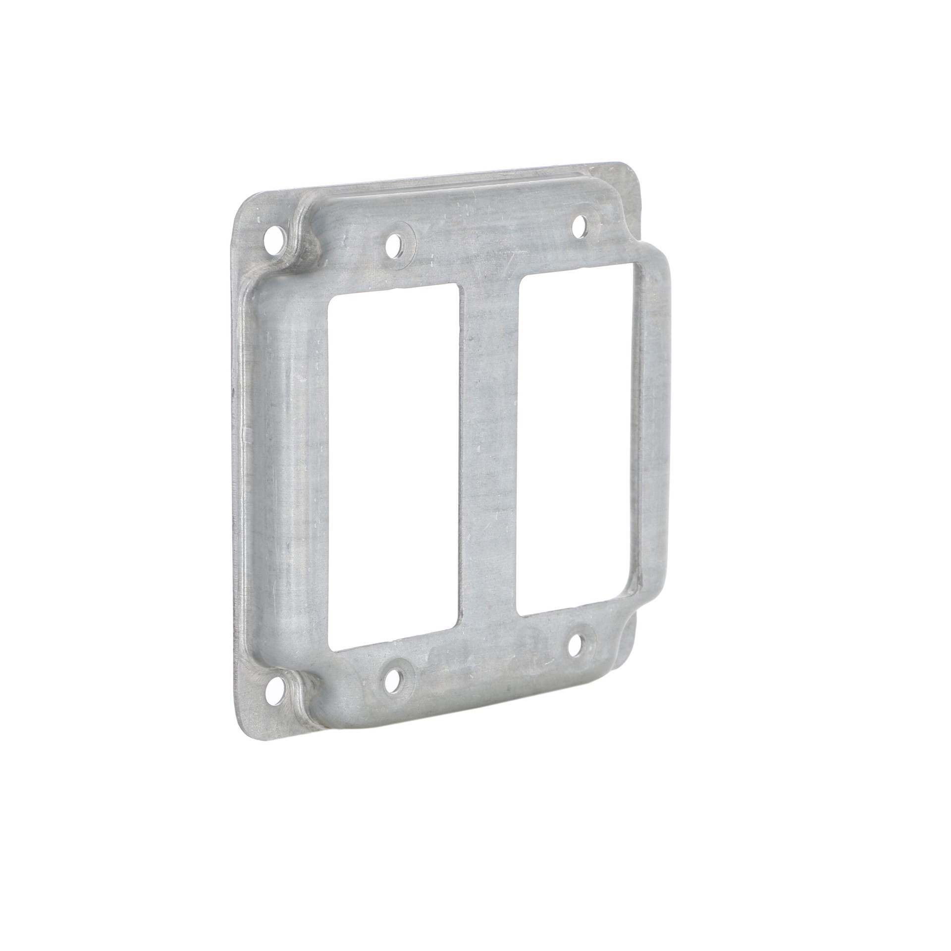 Used in surface mount applications. Mounts 2 GFCI. Raised 1/2 in with crushed corners. cULus Listed.