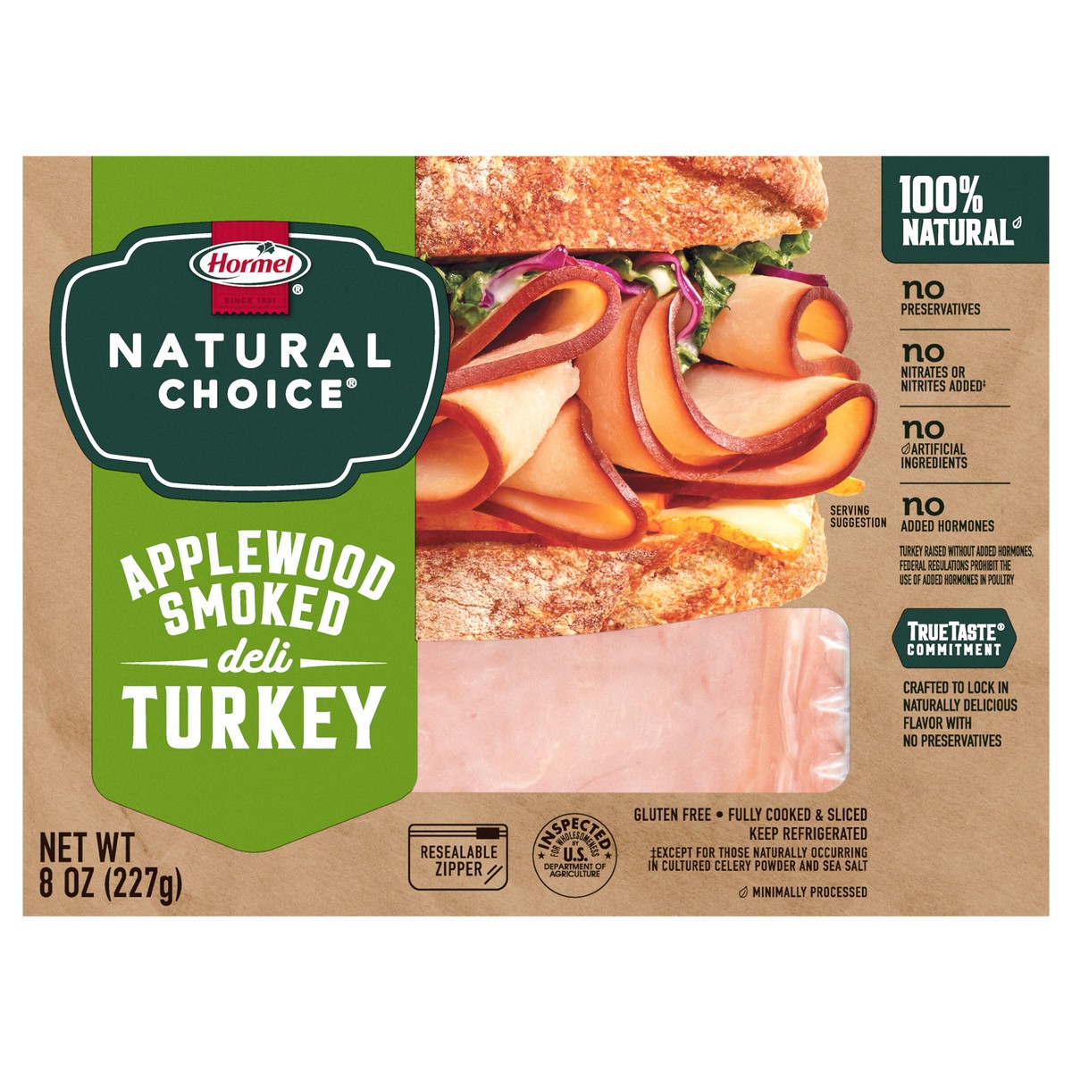 - HORMEL NATURAL CHOICE Sliced Applewood Smoked Deli Turkey Lunch Meat comes in a convenient resealable package
