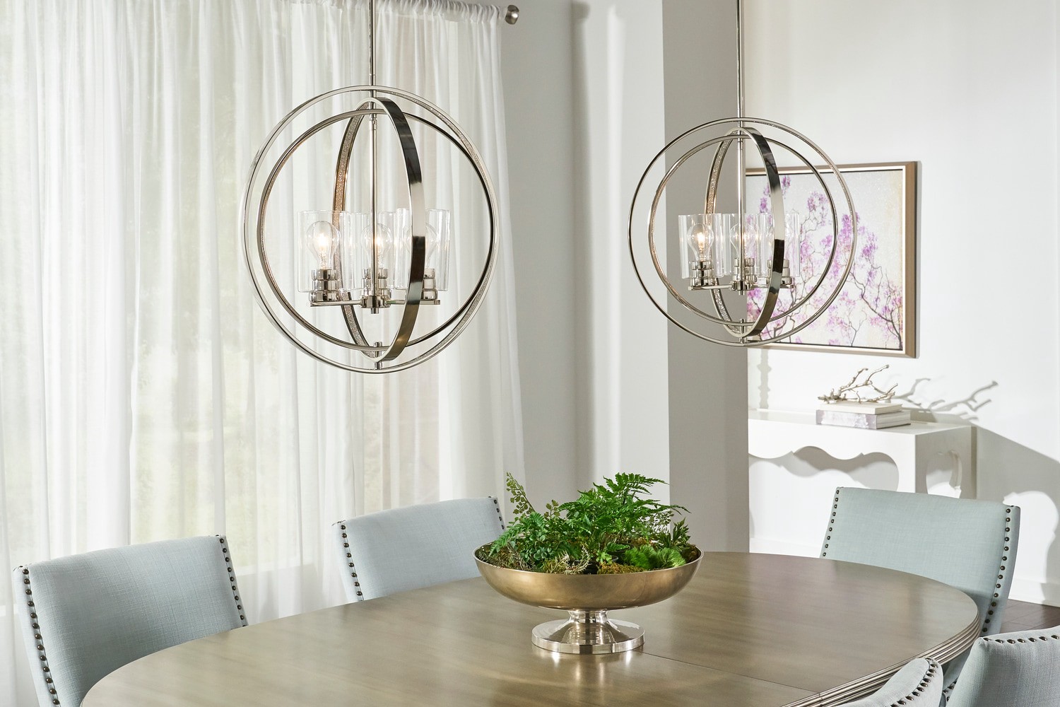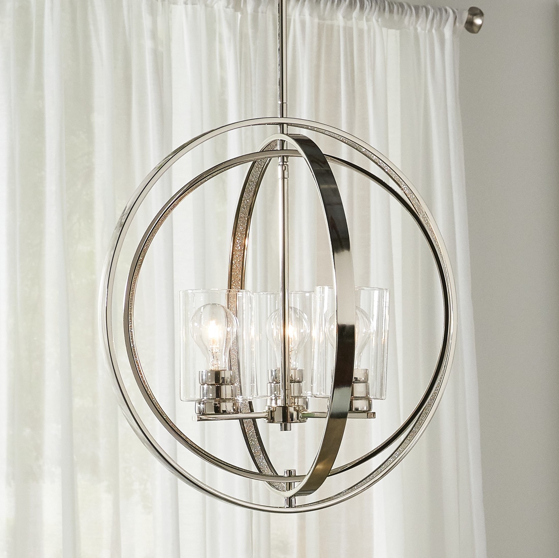 Kichler Angelica 3 -Light Polished Nickel Modern/contemporary Clear glass Globe Medium Hanging Pendant Light