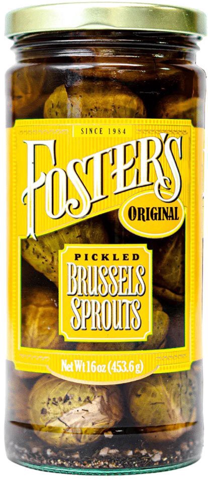 Nutty with a soft inside and crunchy on the outside, these brussel sprouts are preserved in a vinegar brine of black pepper, dill, and garlic. Foster’s Pickled Brussel Sprouts can become your new go-t…