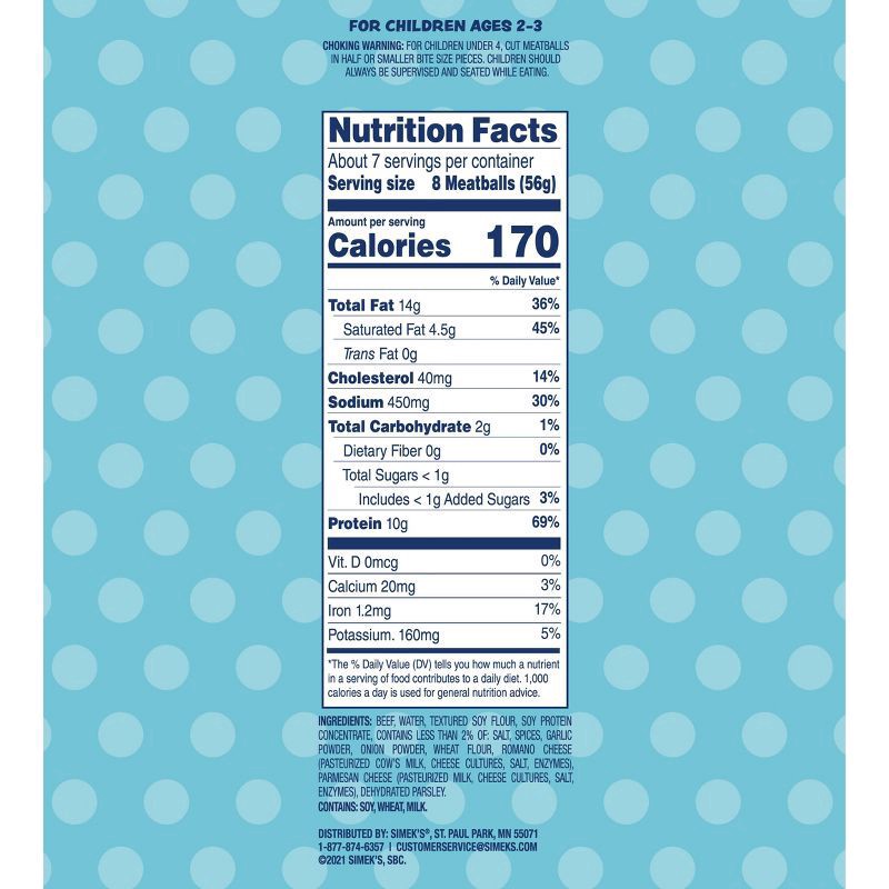 Simek's 1/4 ounce mini meatballs for kids. Free from preservative, artificial colors and artificial flavors.
