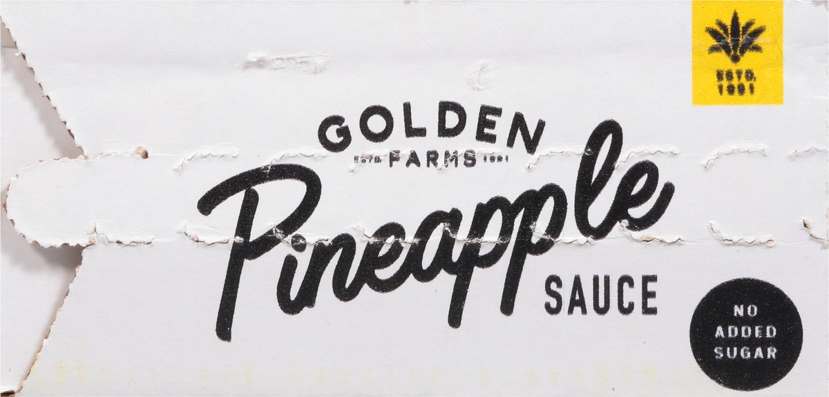 Est. 1991. Gold standard pineapple. 100% real pineapple! & no added sugar! Nature's perfect pineapple. Golden Farms Organic Pineapple Sauce has only one ingredient: organic pineapple. Our sauce is mad…