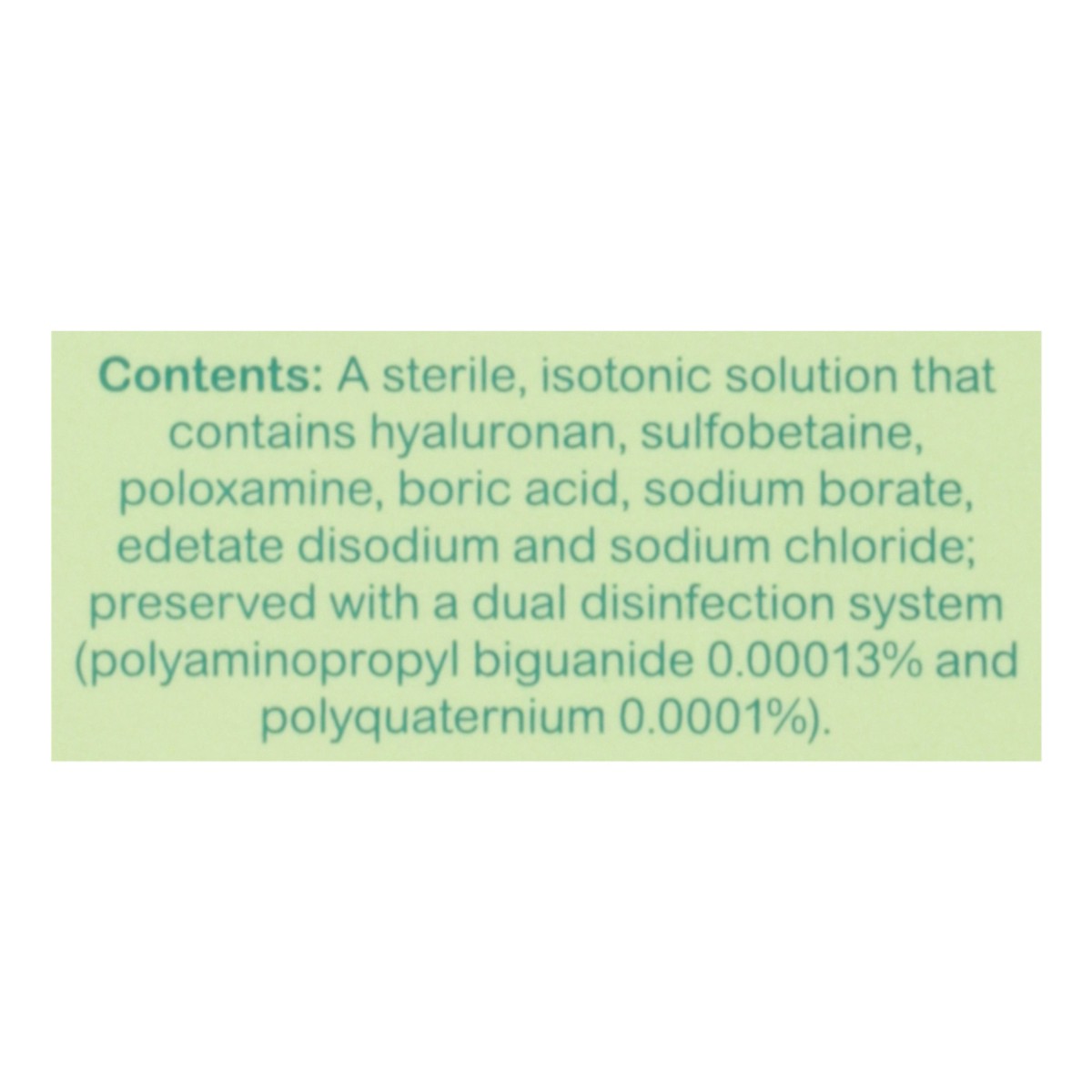 Contents: A Sterile, Isotonic Solution That Contains Hyaluronan, Sulfobetaine, Poloxamine, Boric Acid, Sodium Borate, Edetate Disodium and Sodium Chloride Preserved with a Dual Disinfection System (Po…