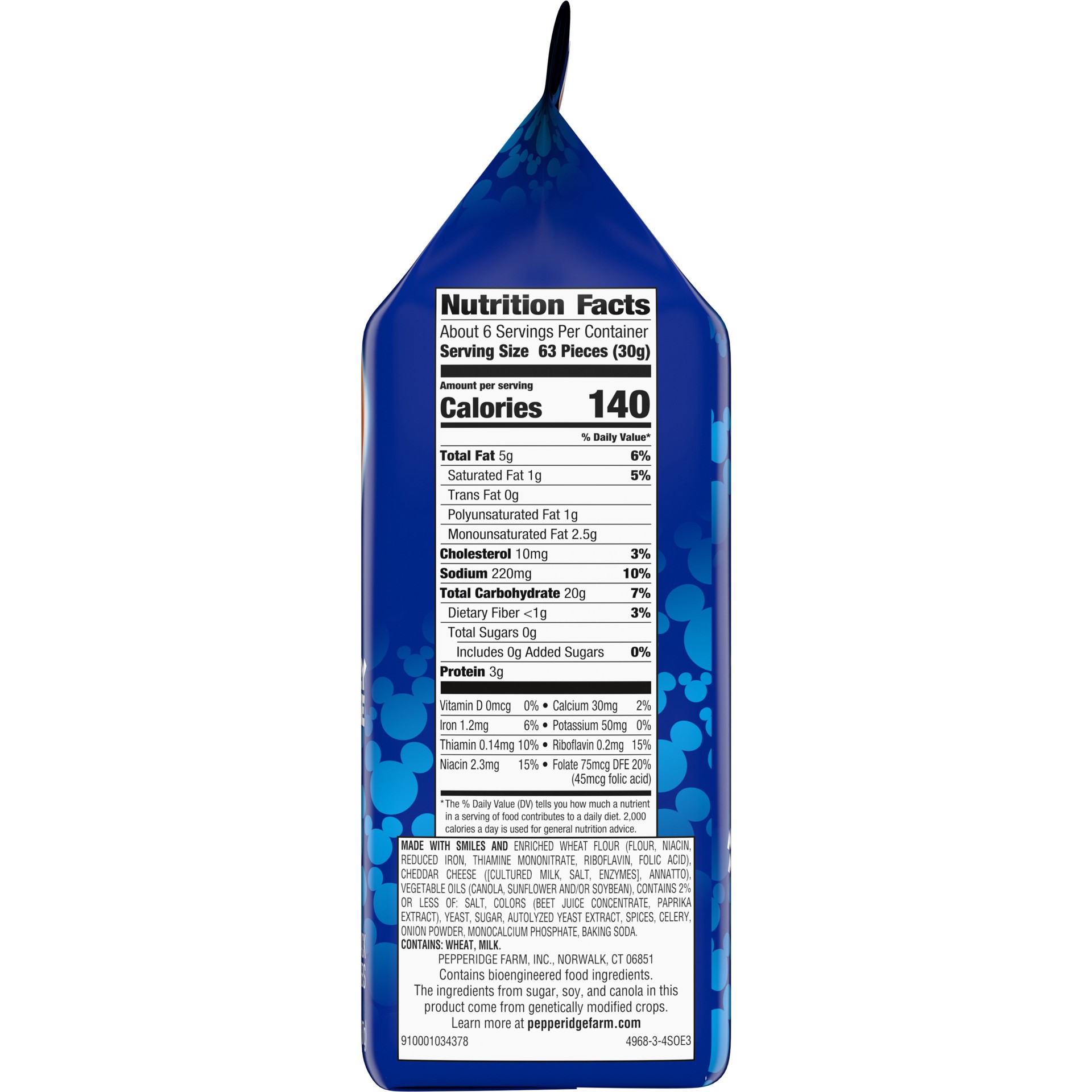 MADE WITH SMILES AND ENRICHED WHEAT FLOUR (FLOUR, NIACIN, REDUCED IRON, THIAMINE MONONITRATE, RIBOFLAVIN, FOLIC ACID), CHEDDAR CHEESE ([CULTURED MILK, SALT, ENZYMES], ANNATTO), VEGETABLE OILS (CANOLA,…