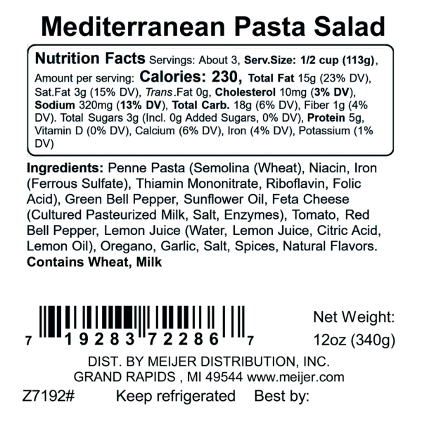 FREDERIKS BY MEIJER Frederik's by Meijer Mediterranean Pasta Salad, 12 oz.