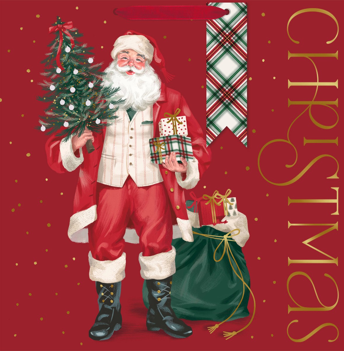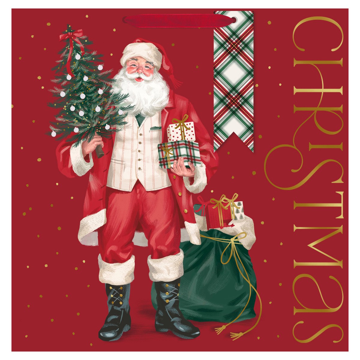 Bring old-fashioned charm to a Christmas gift with this illustrated Santa gift bag from Hallmark. Extra-deep bag with gold ink accents and a plaid gift tag makes the perfect vehicle for stuffed animal…
