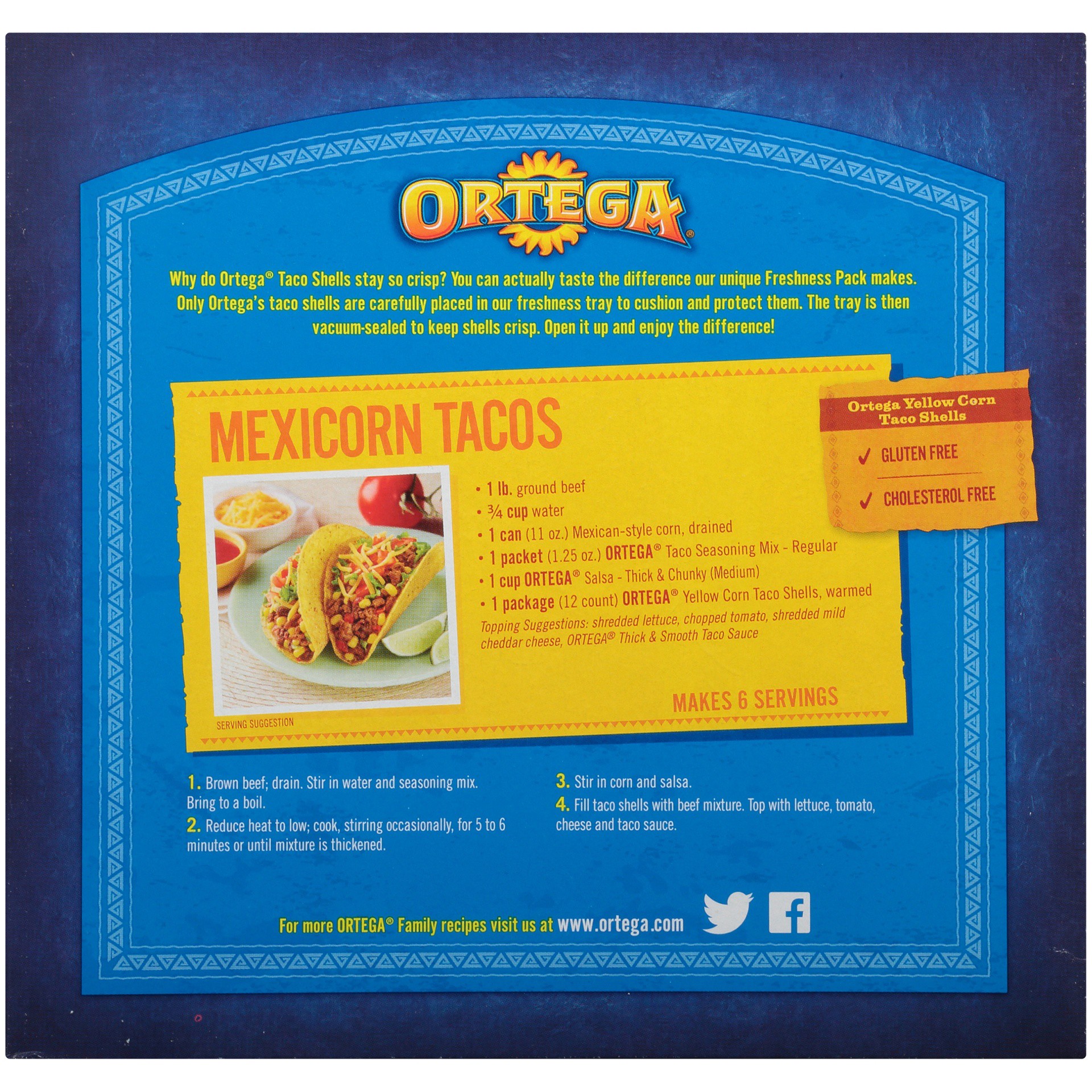 Ortega Taco Shells are made the authentic way using whole kernel corn. That's what gives them their distinctive flavor, aroma and texture.