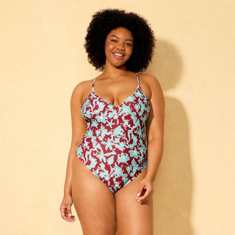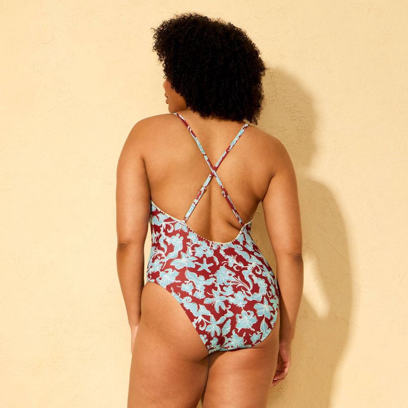 Whether you're lounging poolside or swimming along the shore, you'll stand out from the crowd in this Plunge Floral One-Piece Swimsuit from Shade & Shore™. Made from nylon-spandex blend novelty fabric…