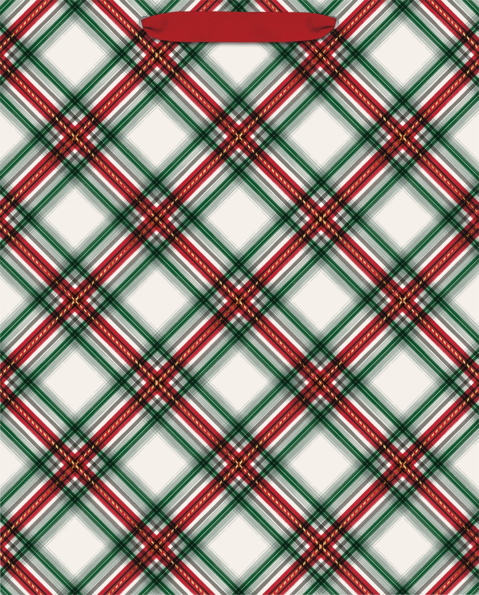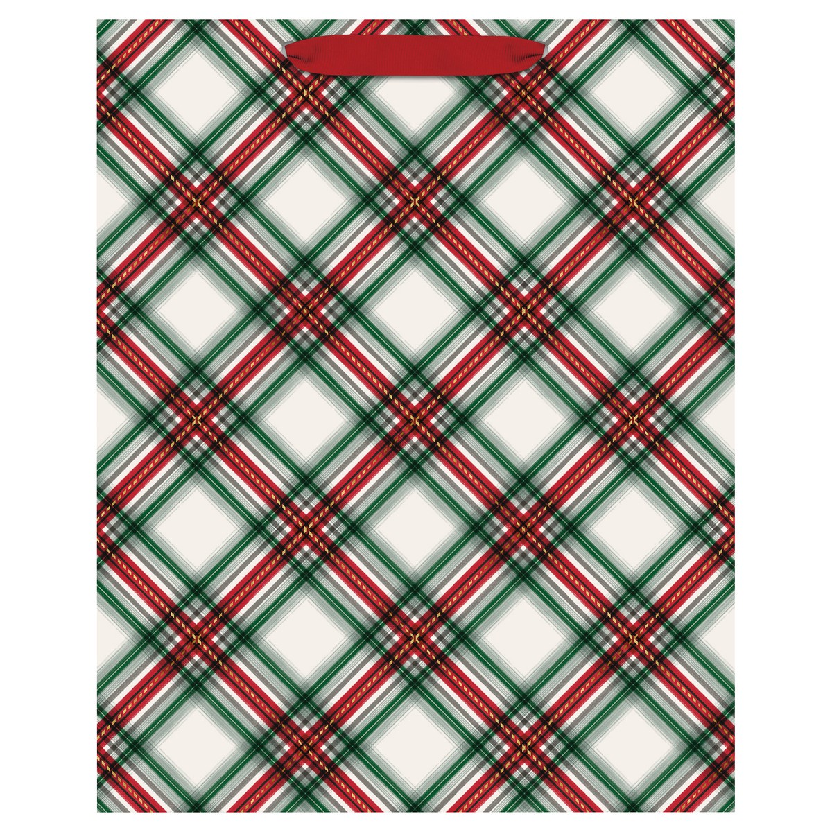 Hallmark 13" Large Holiday Gift Bag (Festive Red and Green Plaid)
