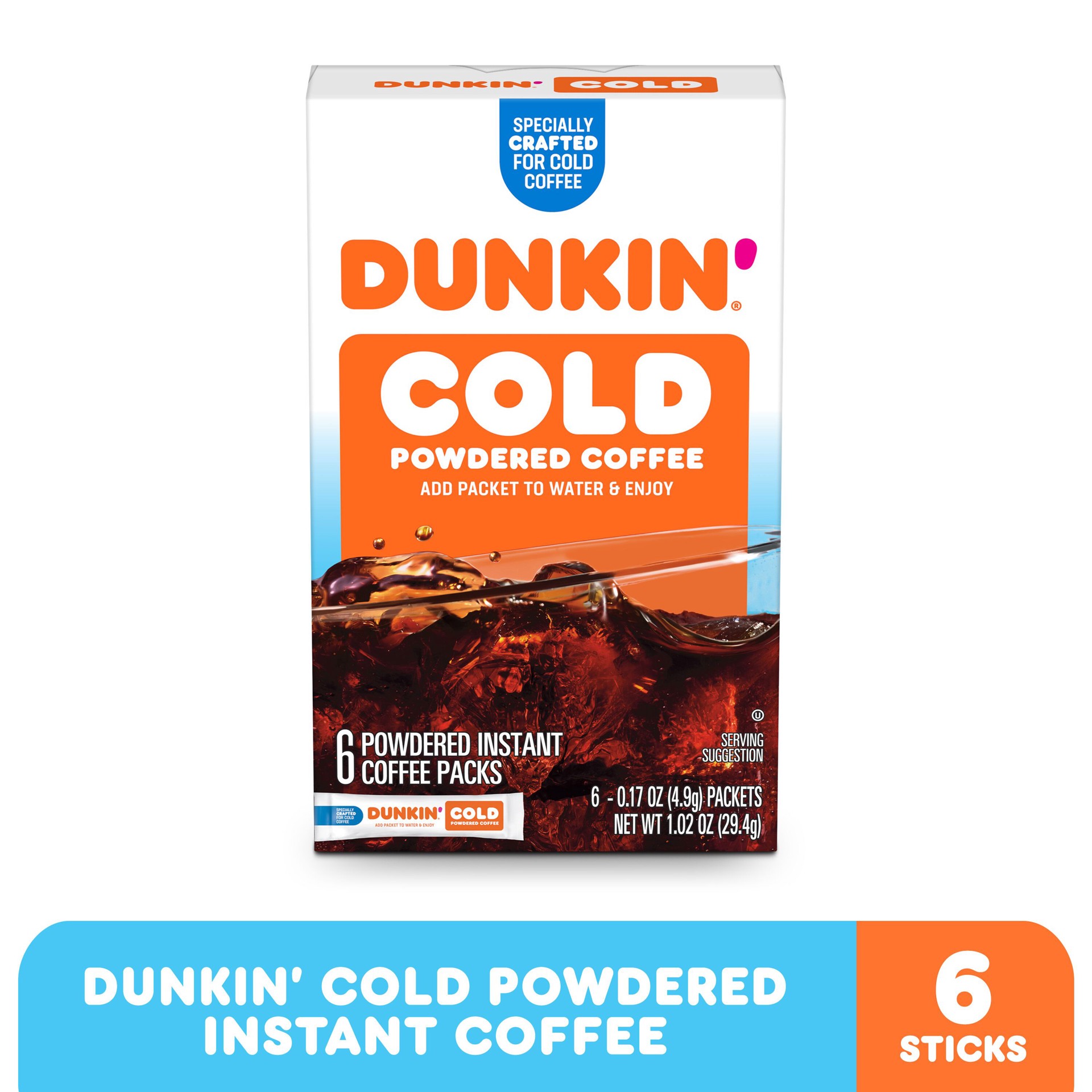 Dunkin'' Dunkin'’ Cold Iced Coffee, Powdered Instant Coffee Packs, 6 count