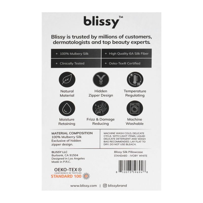 Blissy King 600 Thread Count Silk Pillowcase Ivory White