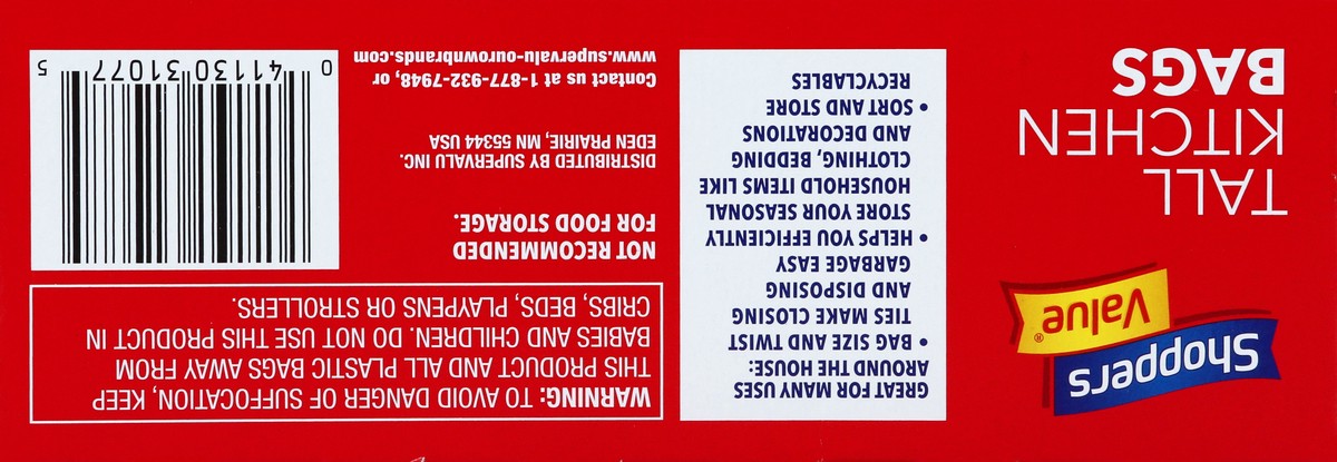 Shoppers Value Tall Kitchen Bags, 15 ct