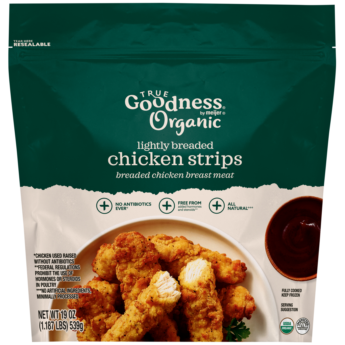 True Goodness Organic Lightly Breaded Chicken Strips,19oz