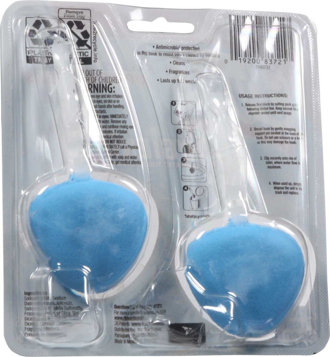 Long lasting fragrance. Cleans & freshens up to 8 weeks (Each unit lasts up to 14 weeks). Antimicrobial protection in the hook to resist odors caused by bacteria. Cleans. Fragrances. Lasts up to 8 wee…