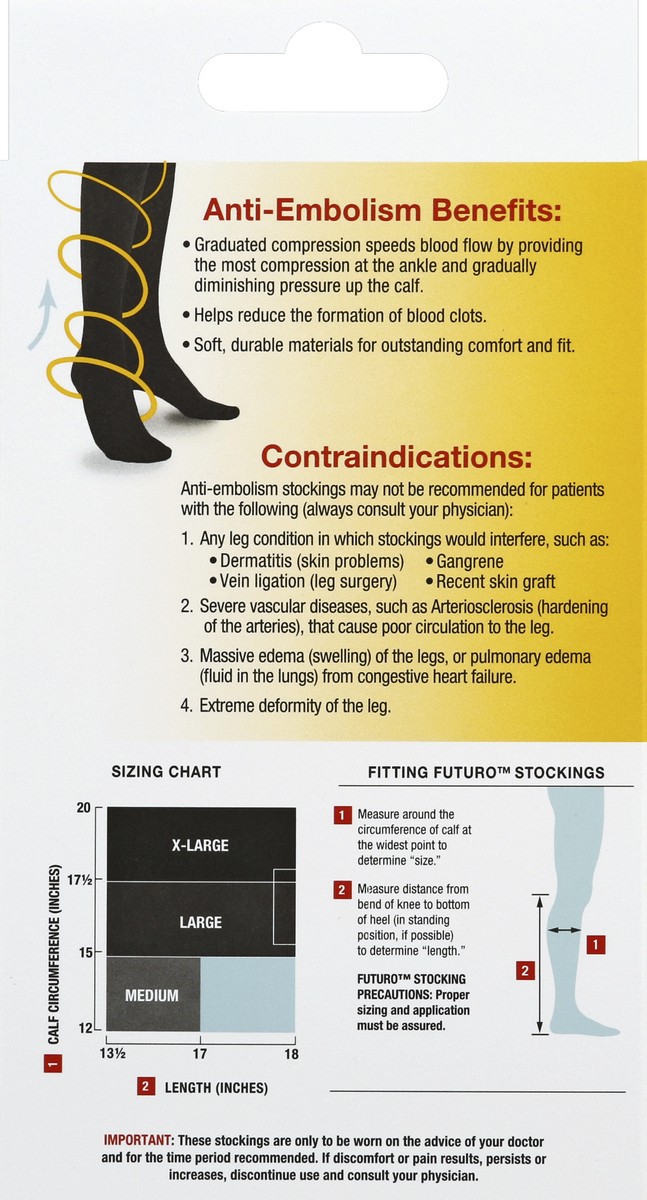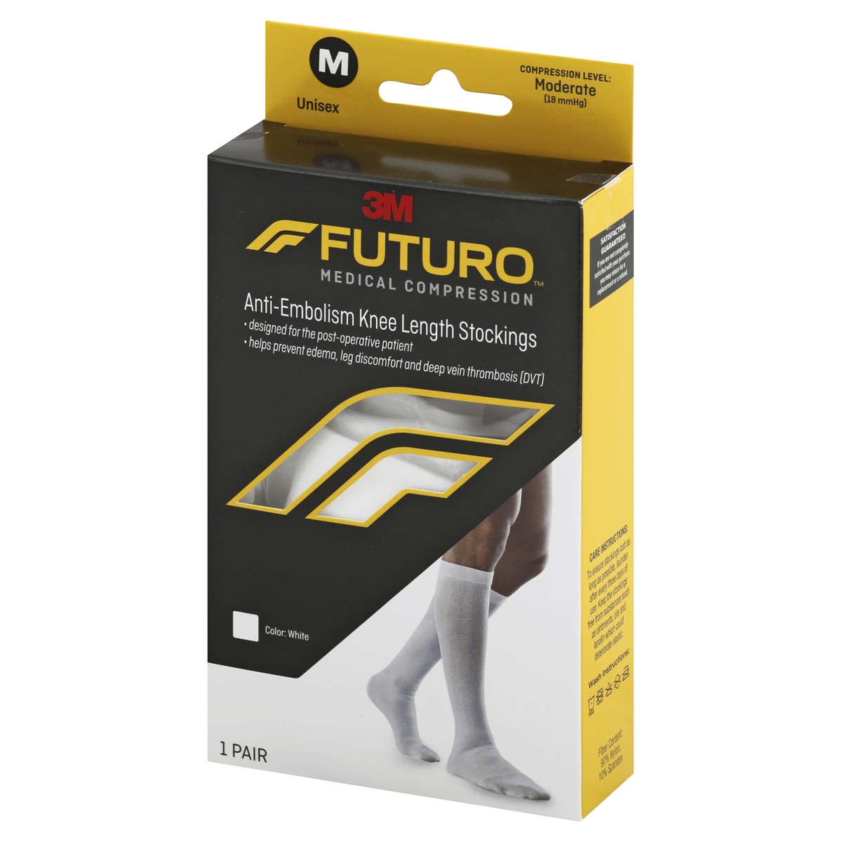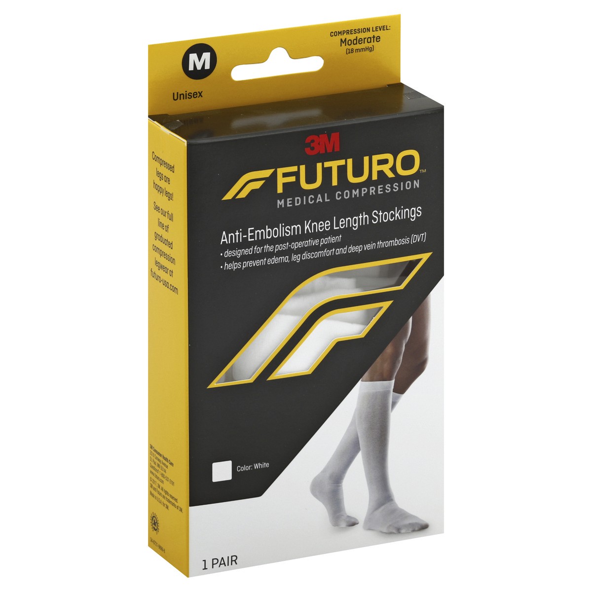 Compression Level: Moderate (18 mmHg). Anti-Embolism Knee Length Stockings: Designed for the post-operative patient; Helps prevent edema, leg discomfort and deep vein thrombosis (DVT). Anti-Embolism B…