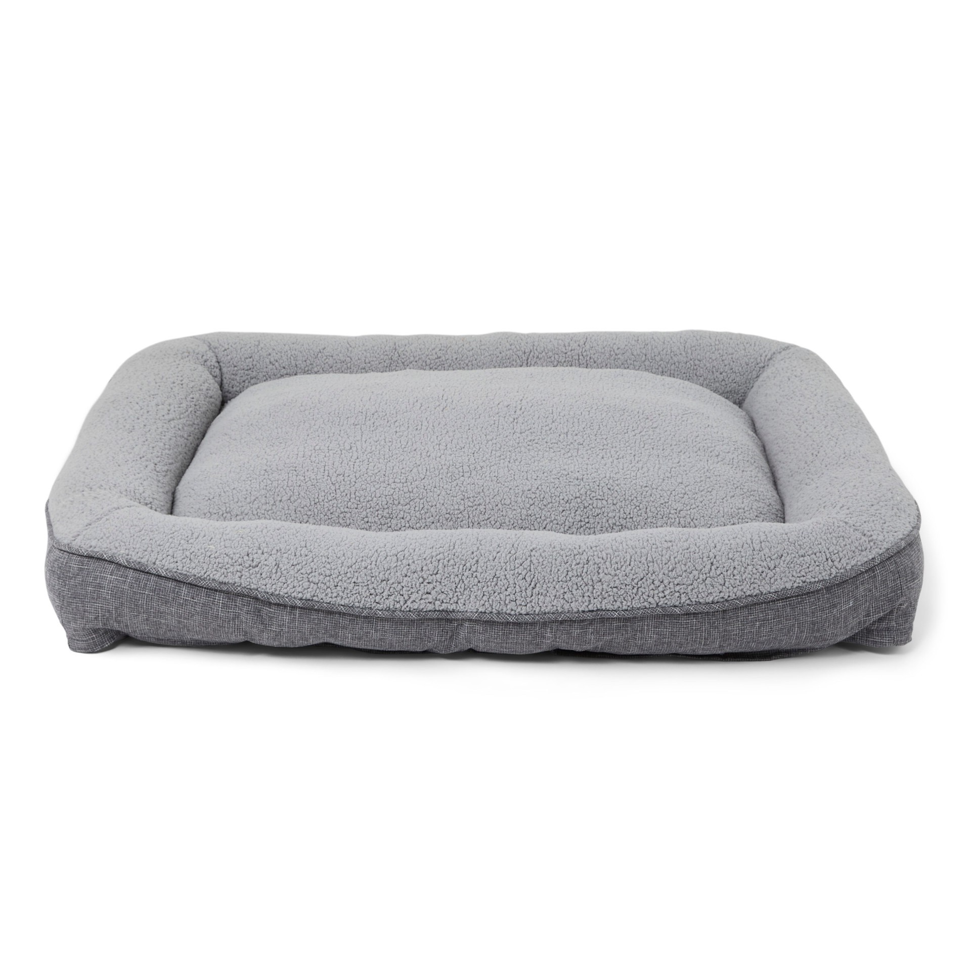 Snooze Fest Grey Rectangle Lounger Dog Bed from EveryYay. Great for large-breed pups to love to stretch and sprawl. Brushed plaid offers soft, lightweight comfort. Made with recycled materials. Super-…