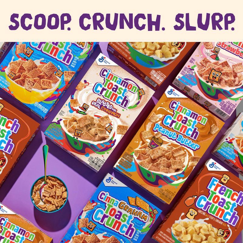 Get off to an epic start with Cinnamon Toast Crunch Cereal. Every crispy square is blasted with CINNADUST, that irresistible mix of real cinnamon and sugar. Enjoy this crispy, sweetened whole wheat an…