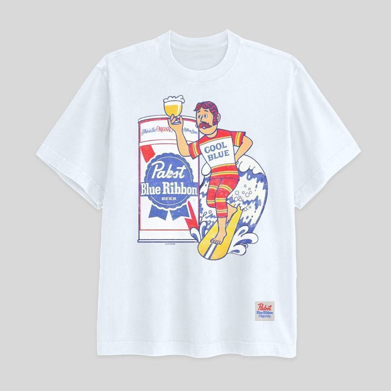 Men's Pabst Blue Ribbon Surfing Short Sleeve Graphic T-Shirt - White M