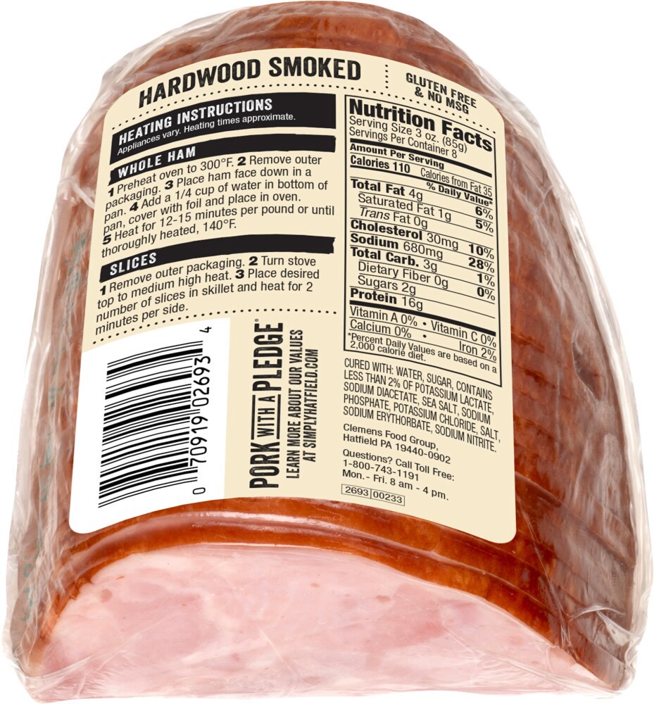 Since 1895. Boneless. Fully cooked. With natural juices. Pork raised with no added hormones or steroids for growth (Learn more at simplyhatfield.com). Pork with a Pledge.