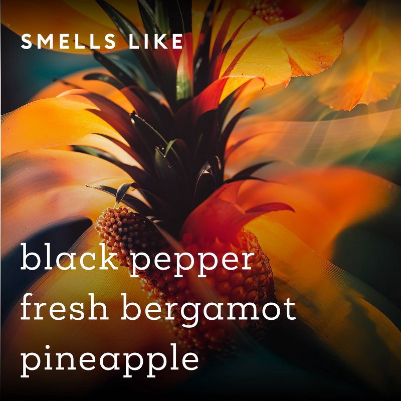 - Smells like: Black Pepper, Fresh Bergamot, Pineapple