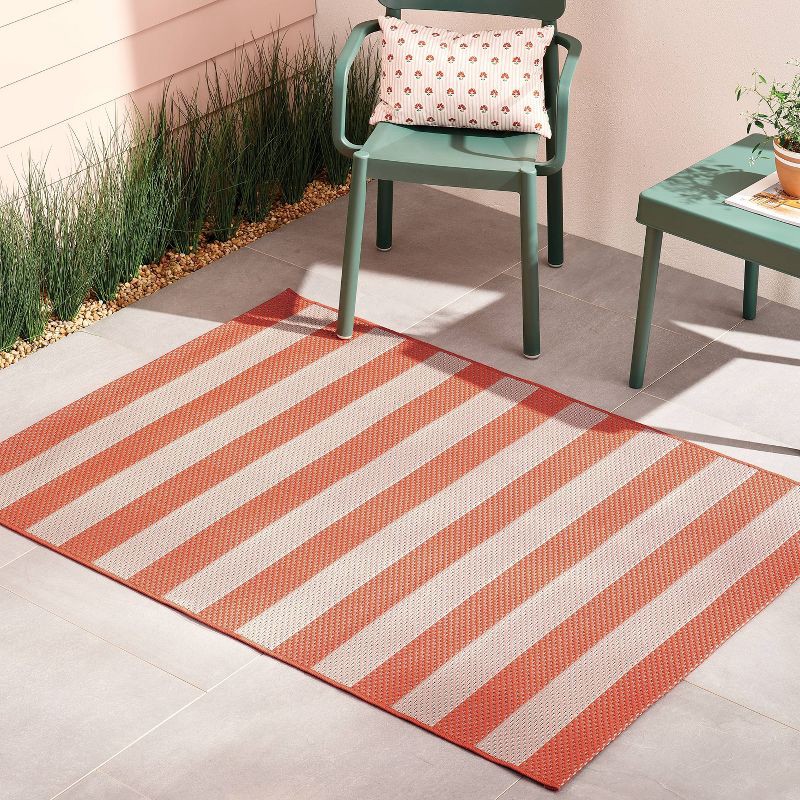 4'x6' Wide Stripe Rectangular Woven Outdoor Area Rug Red - Room Essentials™