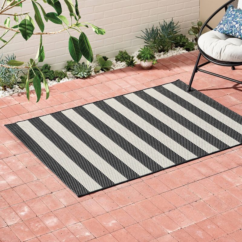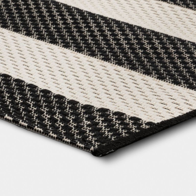 4'x6' Wide Stripe Rectangular Woven Outdoor Area Rugs Black - Room Essentials™