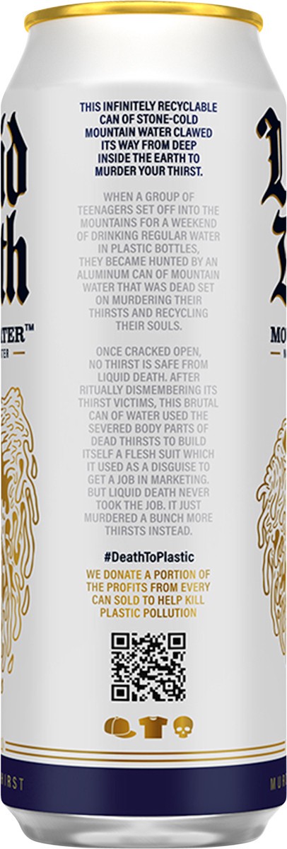 Liquid Death Mountain Water comes from a deep underground mountain source protected by a few hundred feet of stone and contains naturally occurring minerals (aka electrolytes) that aren't just good fo…