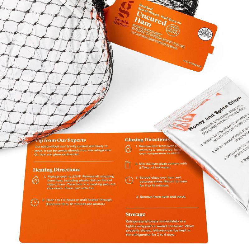 - Good & Gather smoked spiral-sliced ham with glaze packet