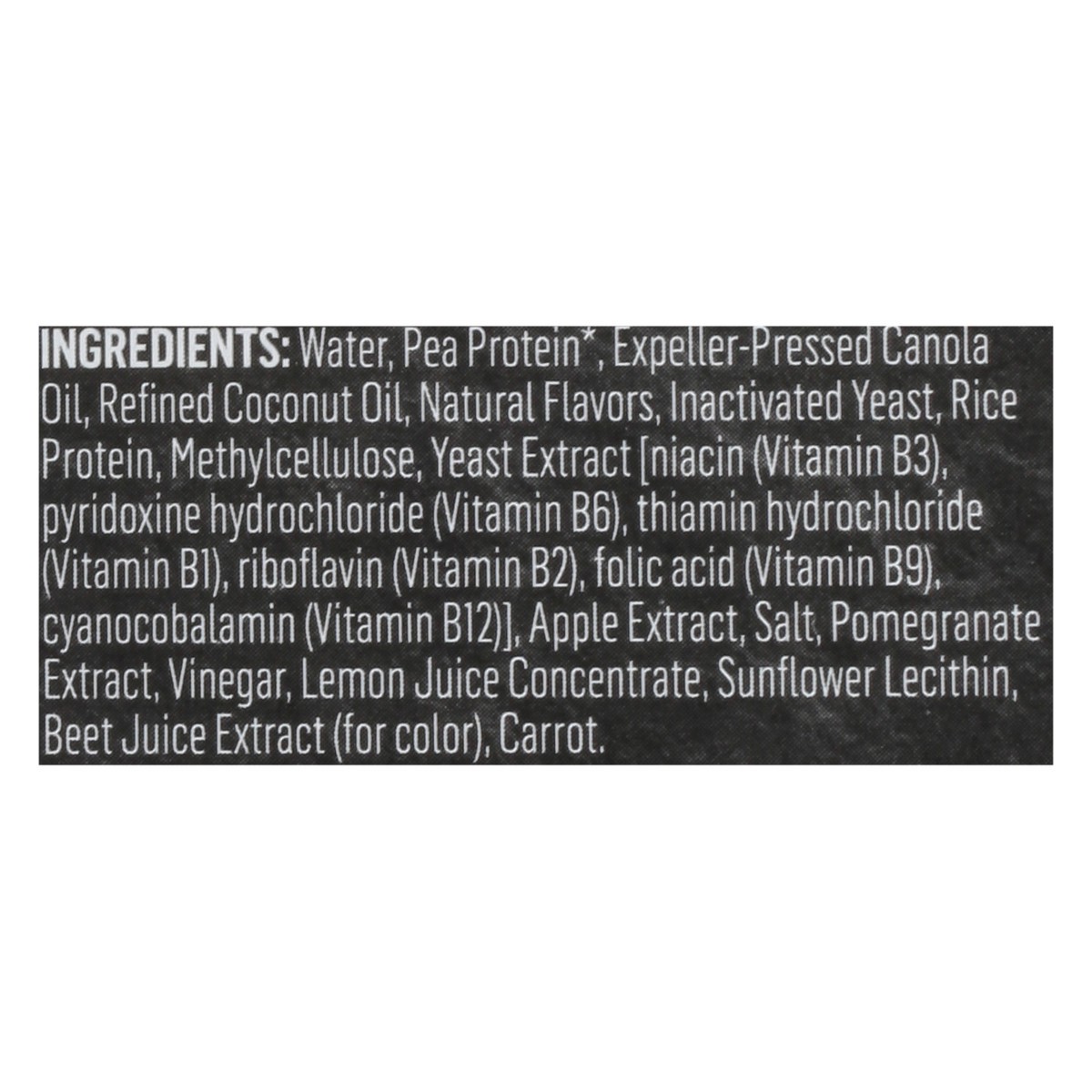 Water, Pea Protein (Peas Are Legumes), Expeller-Pressed Canola Oil, Refined Coconut Oil, Natural Flavors, Inactivated Yeast, Rice Protein, Methylcellulose, Yeast Extract [Niacin (Vitamin B3), Pyridoxi…