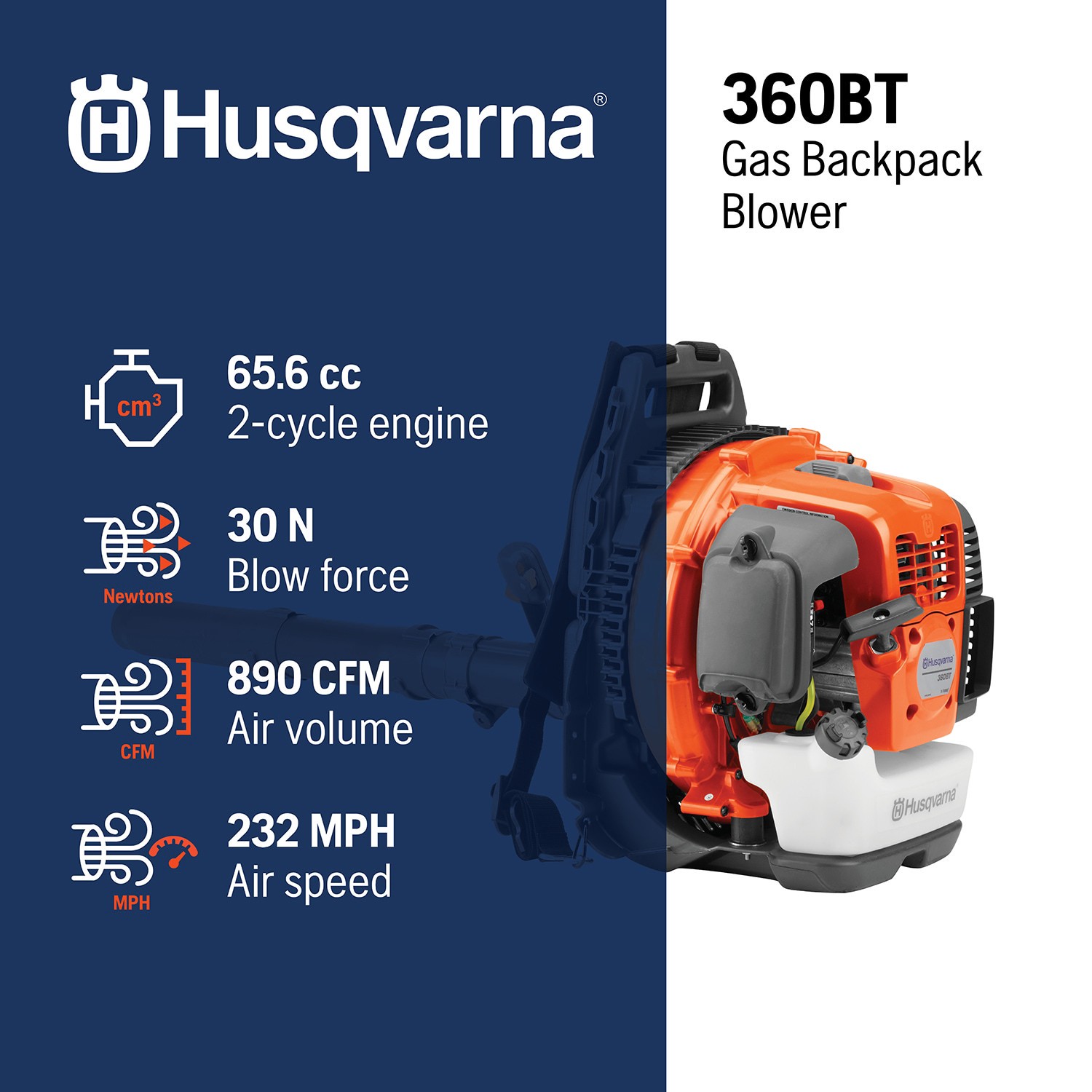 Husqvarna 360BT 66-cc 2-cycle 890-CFM 232-MPH Gas Backpack Leaf Blower