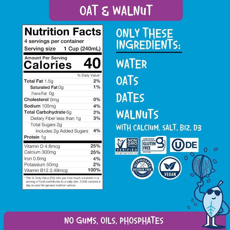 FILTERED WATER, WHOLE GRAIN OATS, WHOLE GROUND DATES, WALNUTS, CALCIUM CARBONATE, SALT, VITAMIN B12, VITAMIN D3.